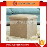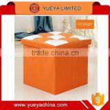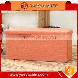Orange Linen Rectangle Folding Seat Foot Stool Storage Box