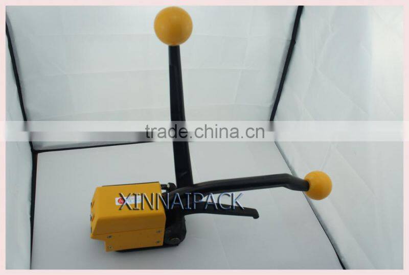 A333 buckle-free steel strapping tool can operate manually,which connect with function of tensioning,sealing and cutting.it is used in flat packaging,such as pallets,boxs,and other simiar packaging.steel bands of common and high tensile strength are both acceptable.All the manual tools are easy to operate and can work efficiently in any occasion.