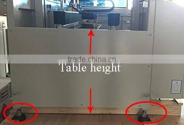 You can adjust table height by the machine foot,the table height is 600-750mm.