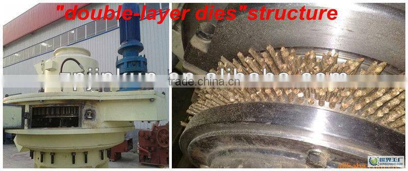 JK series efficient centrifugal pllet mill is our intiative patented products in China through meticulous research and development.The series pellet mill absorbs the quintessence at home ad abroad,the heart part adopts "double-layer die" as the unique structure;The roller are made by abrasion-proof alloy steel,improving the using life of spare parts greatly;For the drive parts,the grease is filtrated automatically lubricated properly.Special design,rational structure,low power consumption,high efficiency,sturdy and durable,supplying the gap of vertucal feeding of ring-die pellet mill at home,reach the international advanced level.