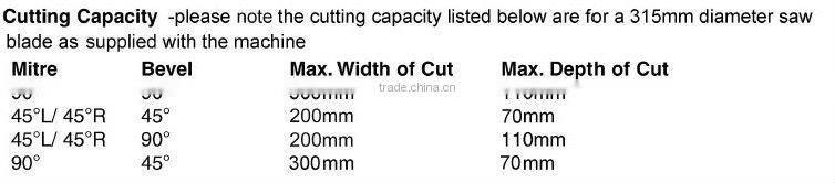 | Blade Diameter | 315mm | Max. Cutting Width | 300 mm | |