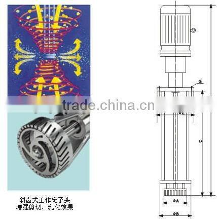 This product is suitable for homogeneous, low viscosity of emulsion dispersion and emulsion manufacture, suitable for the majority of the formula, special the rotor and the stator to generate strong shearing, grinding, impact and convection, the emulsion particles reach the steady state (1-2m)