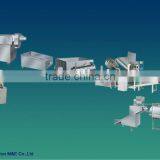 Equipment configuration: mixer→ helix transfer→ extruder→ cooling conveyor→ air conveyor→ five-layer oven→ elevator→ salt fryer→ shaker→ elevator→ roller→ spraying machine→ leading frame→ five-layer oven→ cooling conveyor→ packager