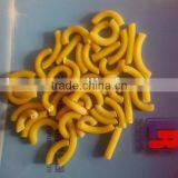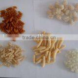 Flow chart: raw material→ mixing→ helix transferring→ extruding→ cooling and conveying→ air conveying→ baking→ elevating→ salt frying→ shaking→ elevating→ flavoring→ sugar spraying→ leading out→ frying→ cooling and conveying→ packing