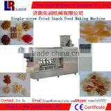 Single-screw chips processing line adopts the flour, corn starch, and potato starch as the raw material then forms a kind of leisure food after extruding, slaking, forming, dying, frying and inflating. According to different molds, this processing line can product different shapes of productions like shell, spiral, square tube, round tube, lotus, thorn snail, pig’s large intestines.