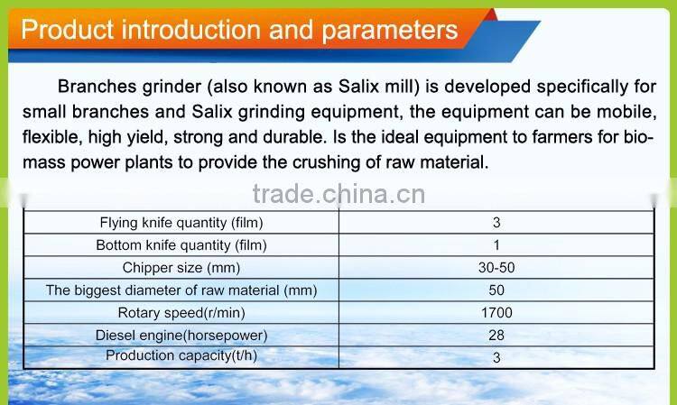 Tony movable branches crusher is used for grinding small branches and salix developed by our company, it is movable, flexiable, high yield, strong and durable. It is manufactored by Tony company.