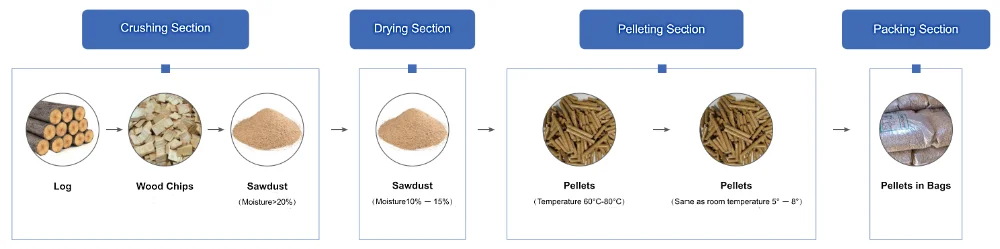 The pellets diameter between 4 to 12mm.Our standard ring die diameter are 6,8,10mm. We can also offer customization for each client.