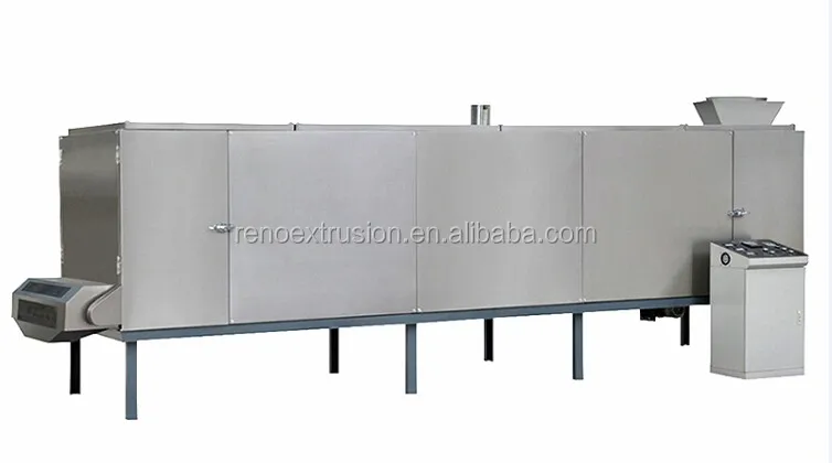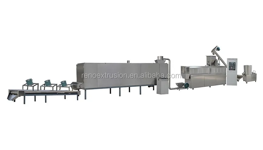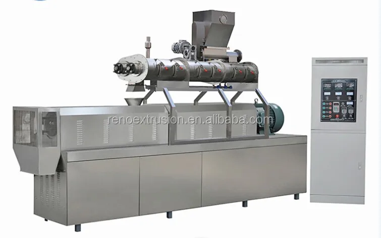 AutomaticTextured soya protein food production line Textured soya protein food machinery Textured soya protein food extruder Textured soya protein food processing line is suitable for producingTextured soya protein food in all shapes. It is widely used with a high temperature soybean flakes and as basic raw material, with a dry twin-screw extrusion machine, through strong squeeze instantaneous puffing, shaped different shapes soya food material ,After drying and surface seasoning coating ,its shaped all kinds of soya protein food finally .
