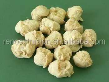 AutomaticTextured soya protein food production line Textured soya protein food machinery Textured soya protein food extruder Textured soya protein food processing line is suitable for producingTextured soya protein food in all shapes. It is widely used with a high temperature soybean flakes and as basic raw material, with a dry twin-screw extrusion machine, through strong squeeze instantaneous puffing, shaped different shapes soya food material ,After drying and surface seasoning coating ,its shaped all kinds of soya protein food finally .