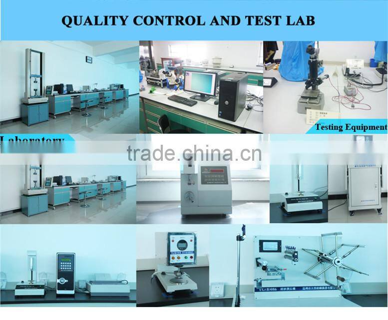 Test on weight/ thickness/ width/ air permeability/ break strength/ elongation/ heat shrinkage/ antistatic/ wet absorption/ bursting strength/ splitting strength/ filtering efficiency/ flame retardant