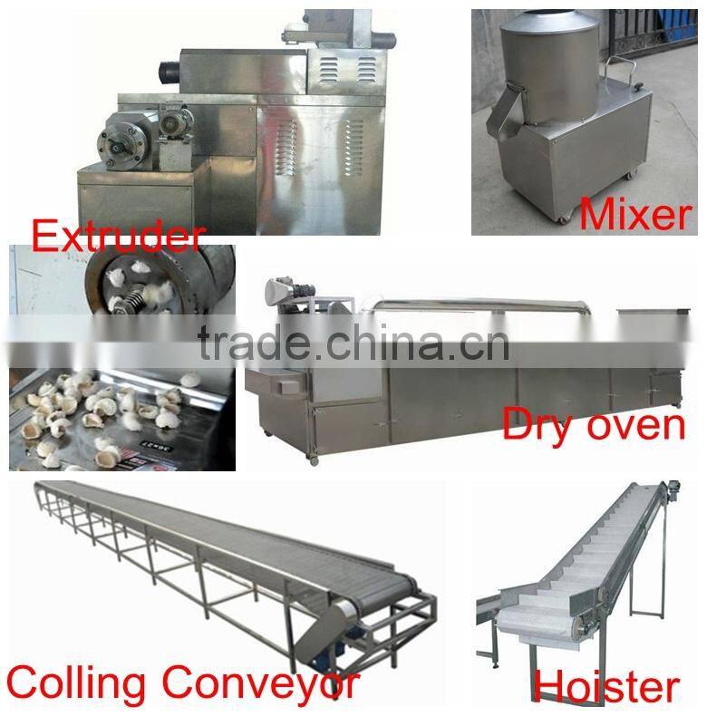 Macaroni pasta is produced by single-screw extruder through extruding, drying, frying, flavoring, and packing, after drying, the pellet needs frying to get expanded.