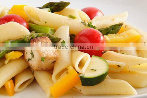 Macaroni pasta is produced by single-screw extruder through extruding, drying, frying, flavoring, and packing, after drying, the pellet needs frying to get expanded.