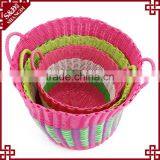 S&D China Large Size New Round Rattan Woven Colored Plastic Storage Baskets, Plastic Laundry Basket