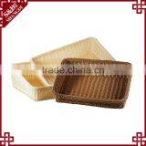 Long Design Eco-friendly Plastic Rattan Hand Woven Bread Basket Bakery Display Trays