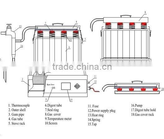Mode | Digest tubes | Gas cover stopple | Stove rack | Gas cover | Gas pump | Tap |