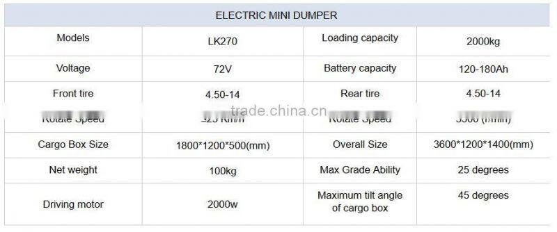 Home > Products > Mini dumper > LK270 Electric Mini Dumper, Small Dump Truck for Sale, Mining Dump Truck