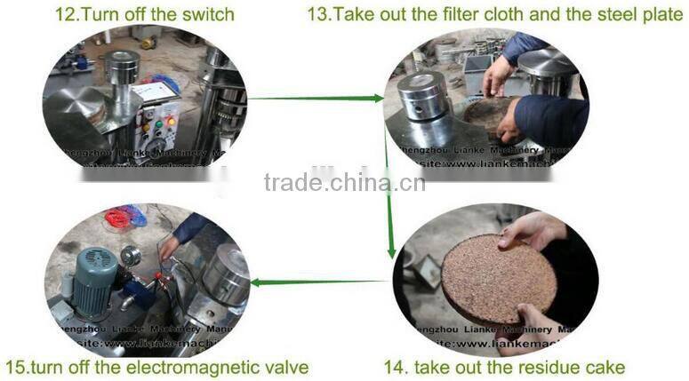2. Put the steel plate and filter cloth, cover the lid,Start pressing the material.