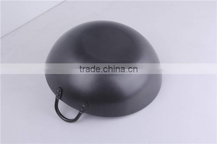 Cookware Manufacturer Two Handle Round Bottom Carbon Steel Wok