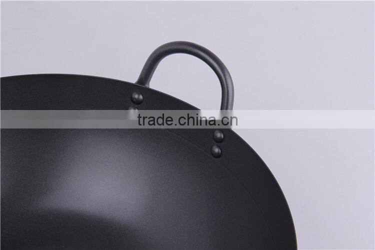 - Chinese Factory Frying Wok Pan Pre-seasoned Cast Iron Round Woks Professional Cast Iron Wok 36 cm