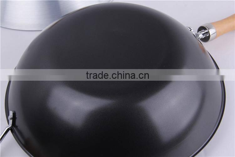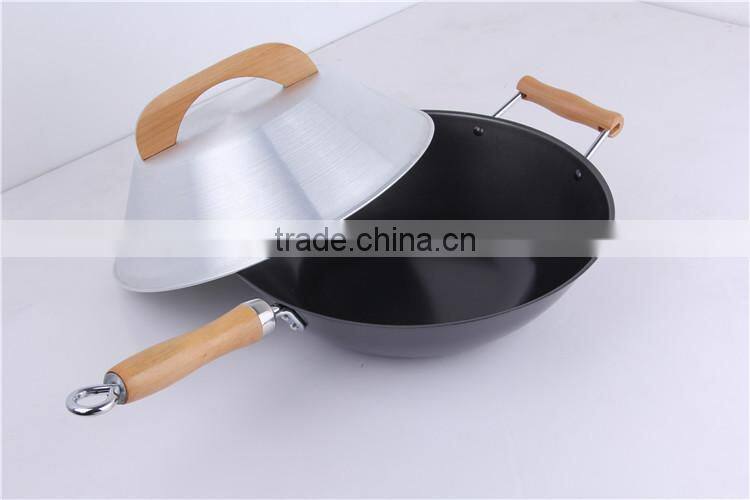 Chinese Cookware Supplier Wood Single Handles Wok Carbon Steel