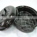 Ceramic Coating Enamel Oval Chicken Roaster Pan With Wire Rack