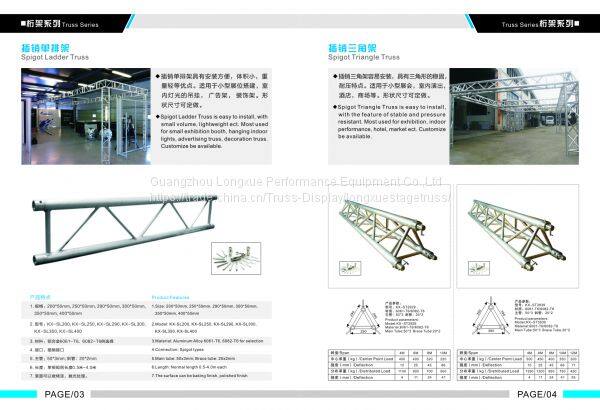 Spigot Ladder Truss is easy to install,with small volume,lightweight ect.Most used for small exhibition booth,hanging indoor lights,advertising truss,decoration truss.Customize be available.