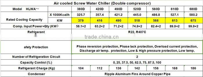 | Model Number | HLWA~380D-680D | Cooling Capability(kw) | 58.1-99.9KW | |