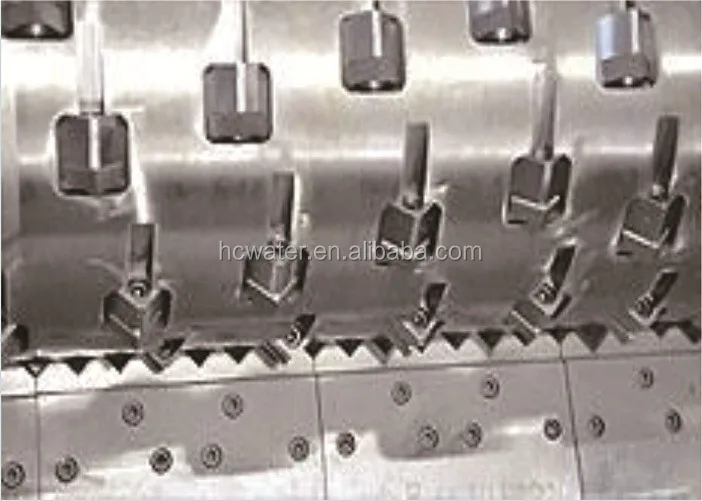 The screw conveying and separating area: the center blades are arranged in auger type and flapped centrifugally to separate the materials thoroughly. The blade is in leaf shape. The materials are discharged in according with their density.