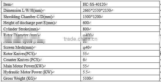 The HC-SS-40150 series of single shaft shredder are our ordinary range from small to medium size. Customers can choose suitable model in according to different rotor and balde for different special requirement.the above data of screen mesh are the set specification and the diameter is available from φ15 to φ100 base on customer's requirements.