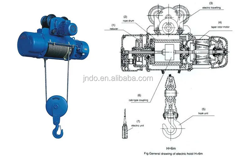 Home > Products > Electric wire rope hoist > Standard Form CD1 5T 220v Wire Rope Electric Hoist
