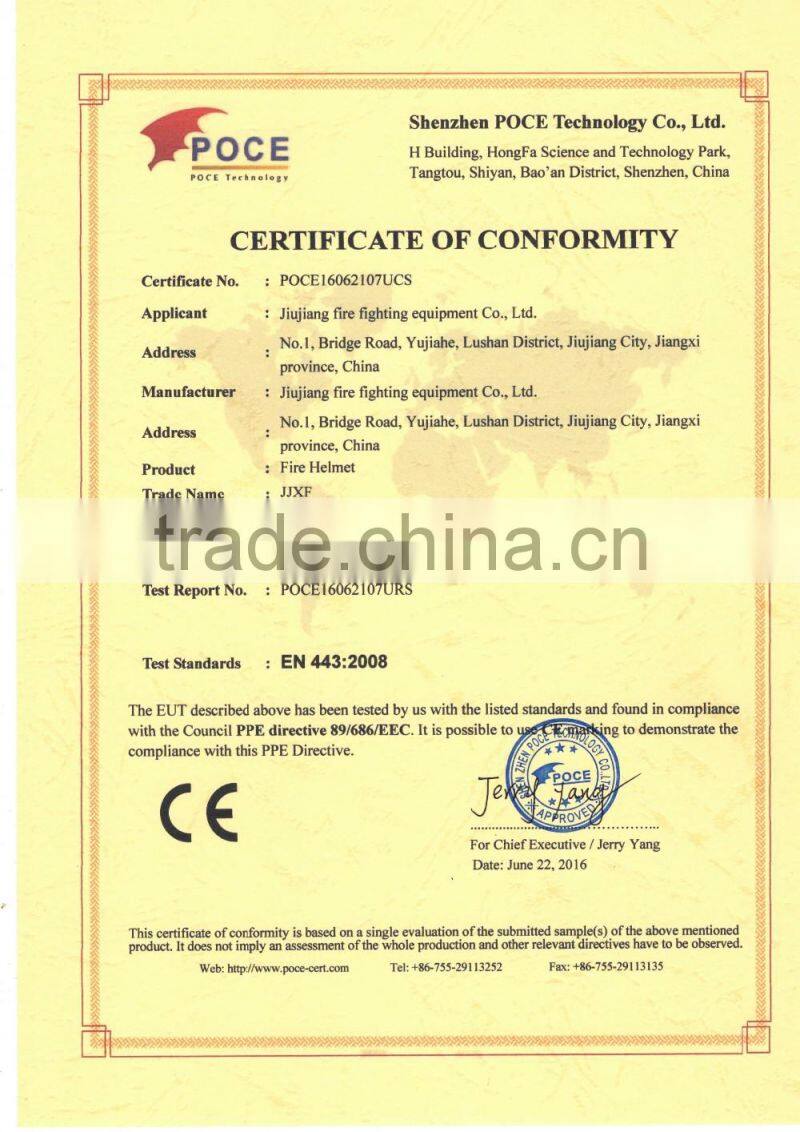 Jiujiang Fire Fighting Equipment Co.Ltd was founded in 1998, has been engaged in Personal Protection Equipment and Fire Fighting Equipment for more than 20 years, and now we are the leader in China in this field, and also we are one of the biggest suppliers of China Fire Department