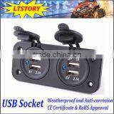 12V DC 3.1A Waterproof Dual Car USB Charger Socket for IPhone 6 Plug Outlet