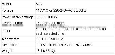 The A7K is a heavy duty deodorize desighned to remove small,odors,virus,and mold from the air .Using natural ozone ,no matter how bad the area ,the A7K liminates it all using no harsh chemicals leaving the area fresh and sanitized.
