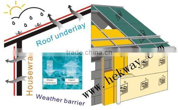 1) Mainly used as roof underlay and house wrap protection for insulating walls.