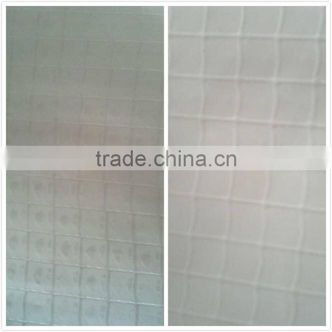 PE mesh cloth fabric layer, forming material is two layers of LDPE film with super PE compound and into, is widely used in building waterproof, garden greenhouses, advertising, packaging materials, agricultural greenhouses and perspective door curtain, etc.Width of 2.05 meters, arbitrary length.