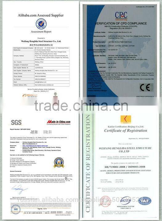 (8).Low Cost: Compared with concrete or other types of structures, a light gauge steel structure is light, and reduces the requirement on foundation loads, which can result in large scale savings in foundation costs.