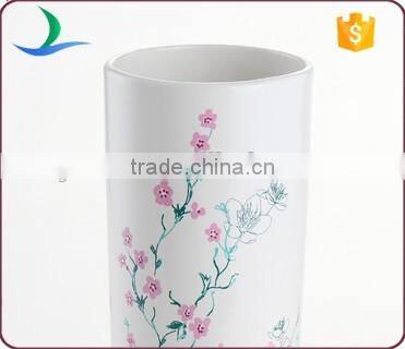 Red Flower Decal Ceramic Hotel Novelty Eco Friendly Trash Can Wholesale