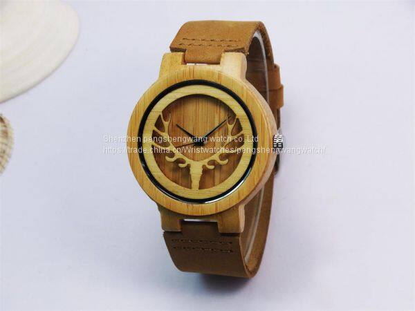 2017 Fashion Unisex Leather Strap Bamboo and Wooden Watch