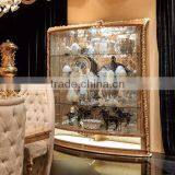 Luxury Golden Fou- Door Display Showcase, Gorgeous Decorative Glass Display Cabinet, Solid Wood Carved Wine Cabinet