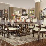 Luxury European Wooden Hand Carved Golden Color Rectangle Dining Table,Leather Upholstery Dining Chair Home Furniture(MOQ=1 SET)