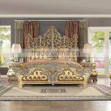 Classic King Size Solid Wood Bedroom Set/Golden Color Italian Style Hotel And Villa Bedroom Furniture(MOQ=1 SET)