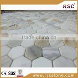 2" Hexagon Carrara Wave Pattern Marble Mosaic