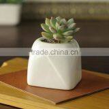 Indoor Decor Small White Glazed Ceramic Geometric Planter