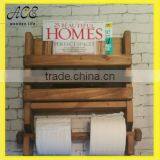 Rustic Wooden Wall Double Toilet Roll Holder and Book Magazine Rack - Hand Made