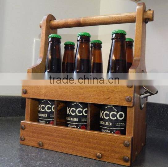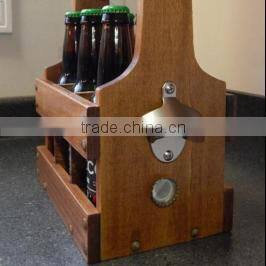 Home > Products > wooden holder/rack/stand > Handcrafted Wooden Beer Carrier With Opener and Cap Sticker Six Pack Carrier