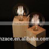 Wooden Table Lamps With Textile Cable and Extra Large Vintage Edison Bulb