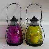 Color Glass Candle Holder With LED Candle,hanging Lantern