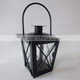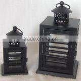 Black Metal And Glass Lantern for Parafin Wax Pillar Candle