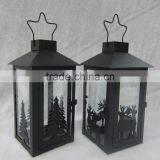 Xmas Black Metal Iron Sheet Lantern With Christmas Trees