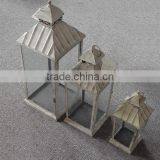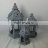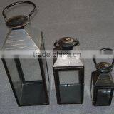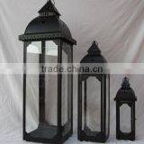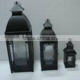 Decorative 3pcs Metal Iron Candle Lantern With Clear Glass